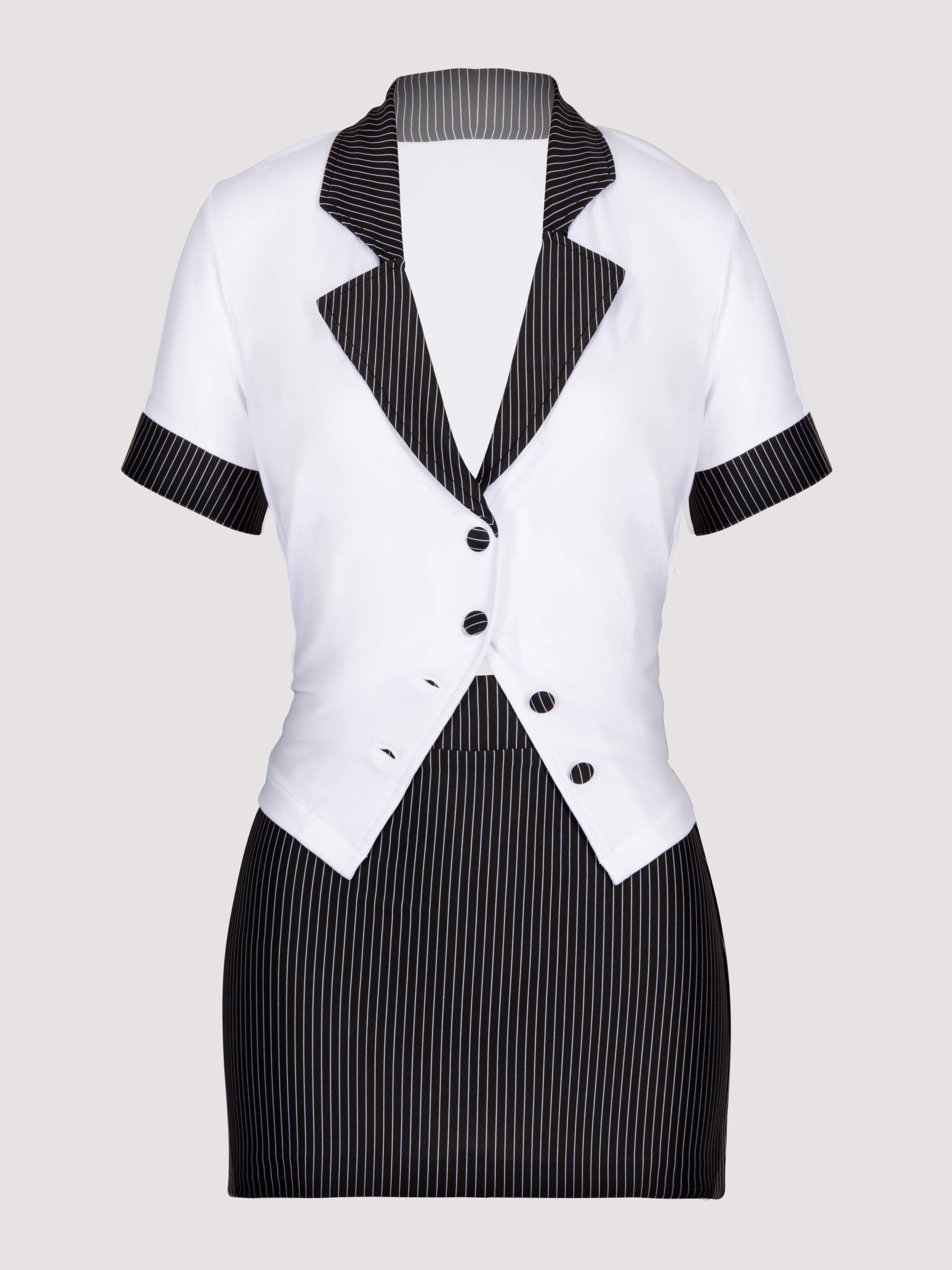 Discover the fun side of being chained to the desk in this alluring secretary ensemble from Lovehoney Fantasy. A short pinstripe skirt and sultry shirt combine to give you an irresistible office bombshell look that's bound to boost office morale.