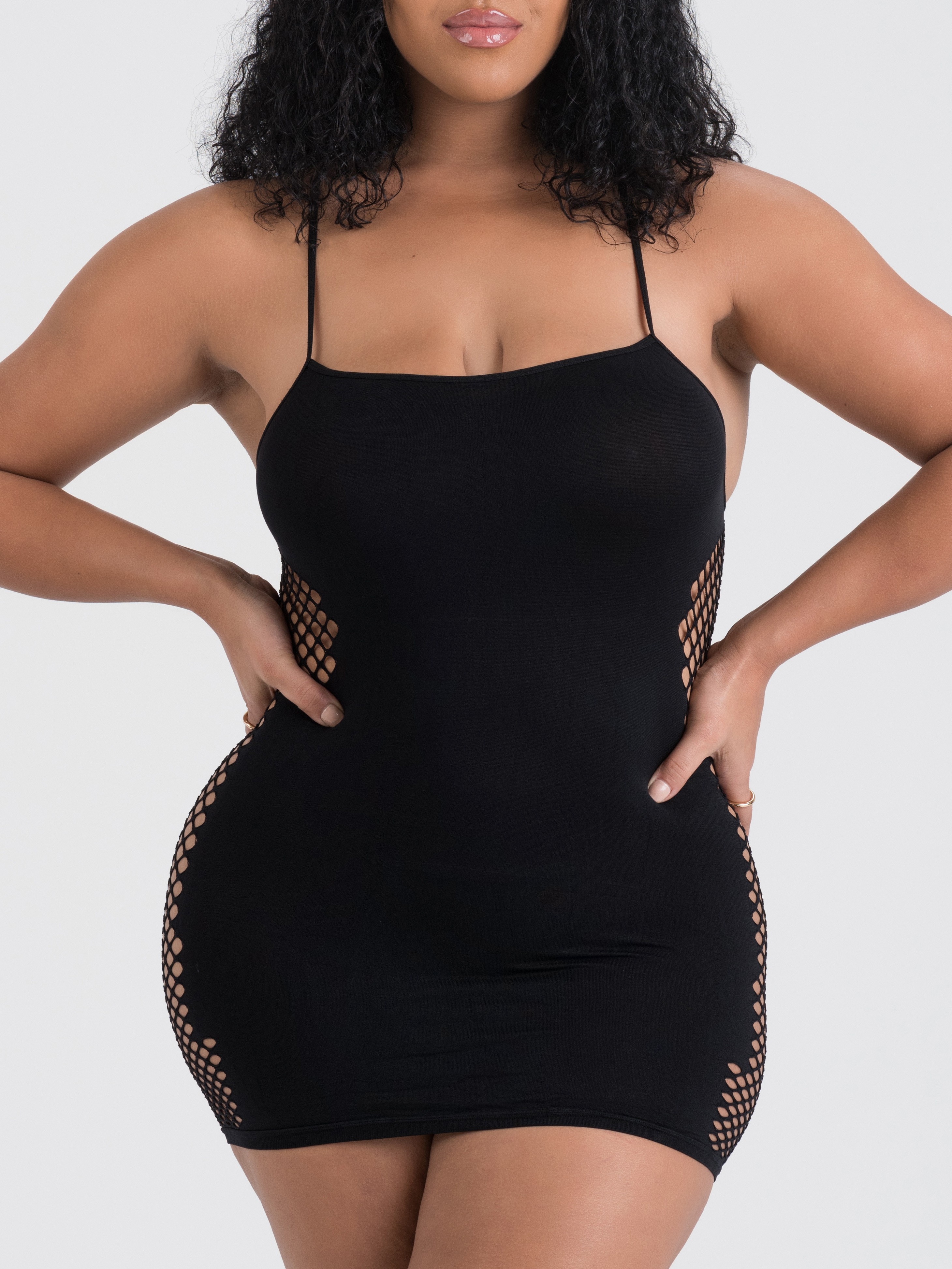 From the front this dress purports to be an average dress, while the reverse holds a alluring surprise. Completely sheer at the back, a wide fishnet-pattern fabric that provides an exciting showcase of your skin underneath. Fishnet sides cleverly cut into the opaque black front and accentuate curves at their most visually advantageous points - it's like a bloomin' miracle!