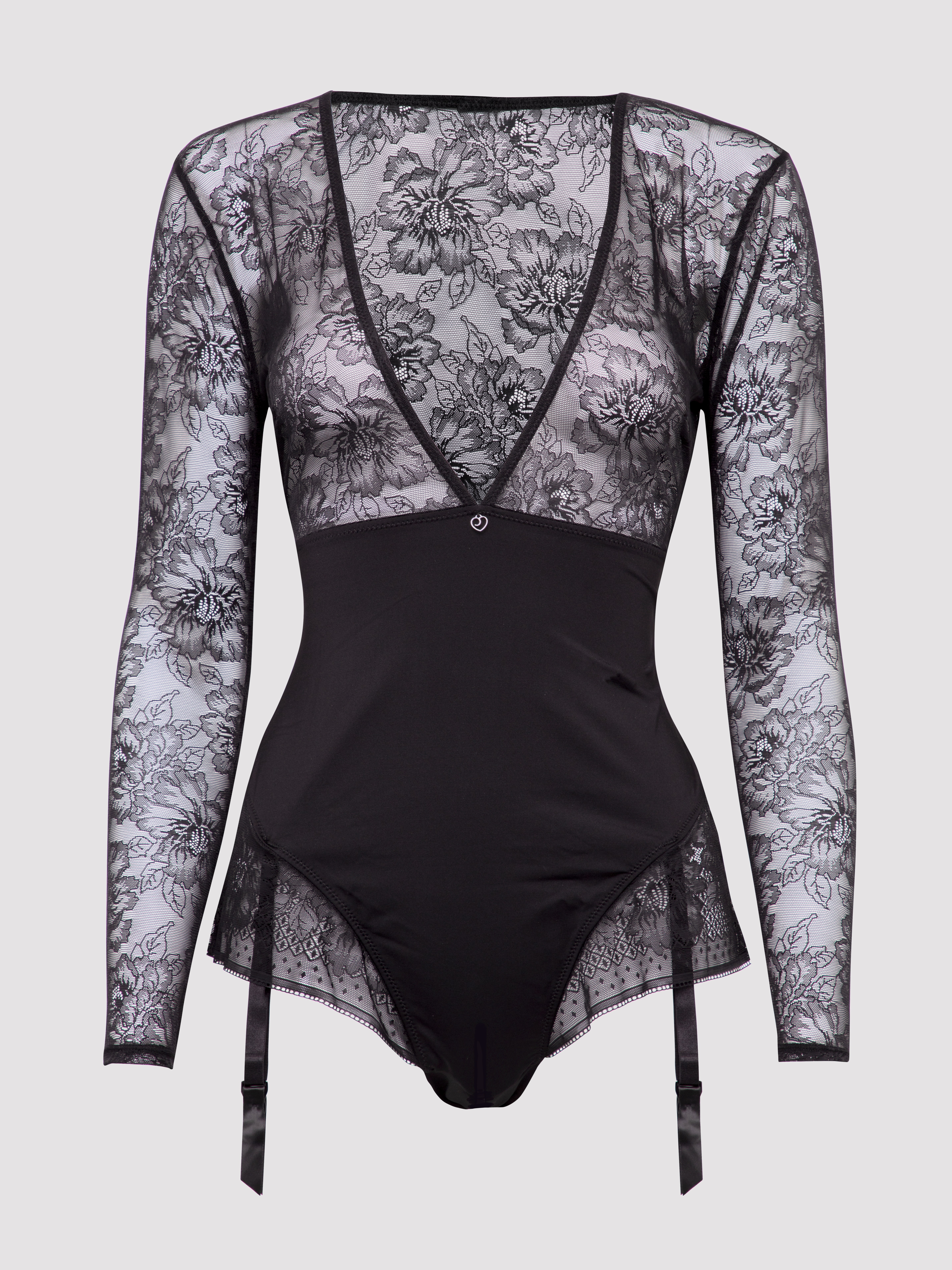 Made to be seen, this long sleeve body from our Hourglass collection is packed with alluring secrets – from the smoothing, sheer floral mesh and supportive opaque microfibre, to the passionate open crotch, plunging neckline and detachable suspender straps.