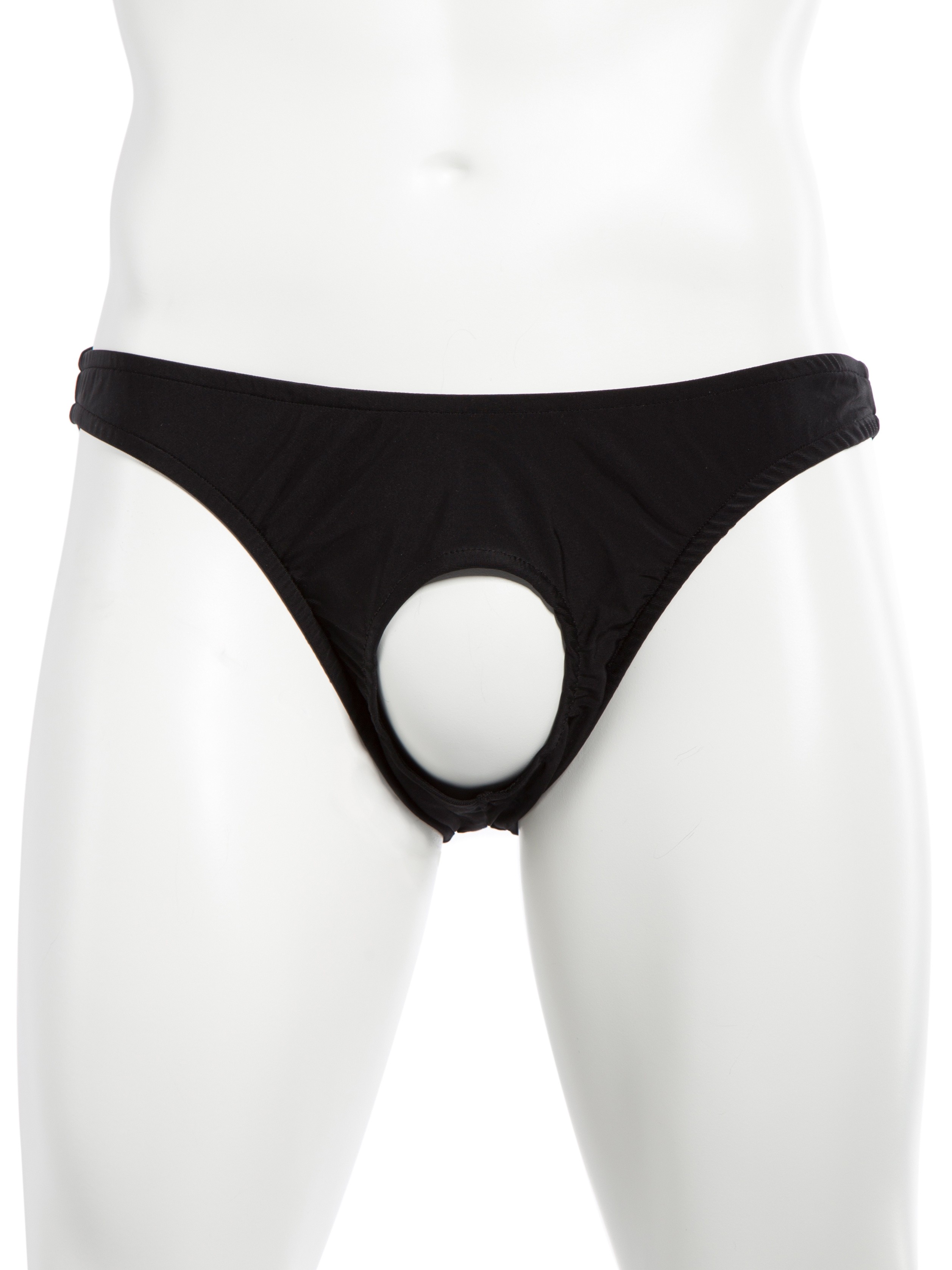 My, oh my. Though they may look just like your standard tight black briefs from behind, these stretchy, alluring briefs have a bold open front that frames your fellows to perfection. Pop them on under jeans and surprise your partner with a slow, alluring reveal.