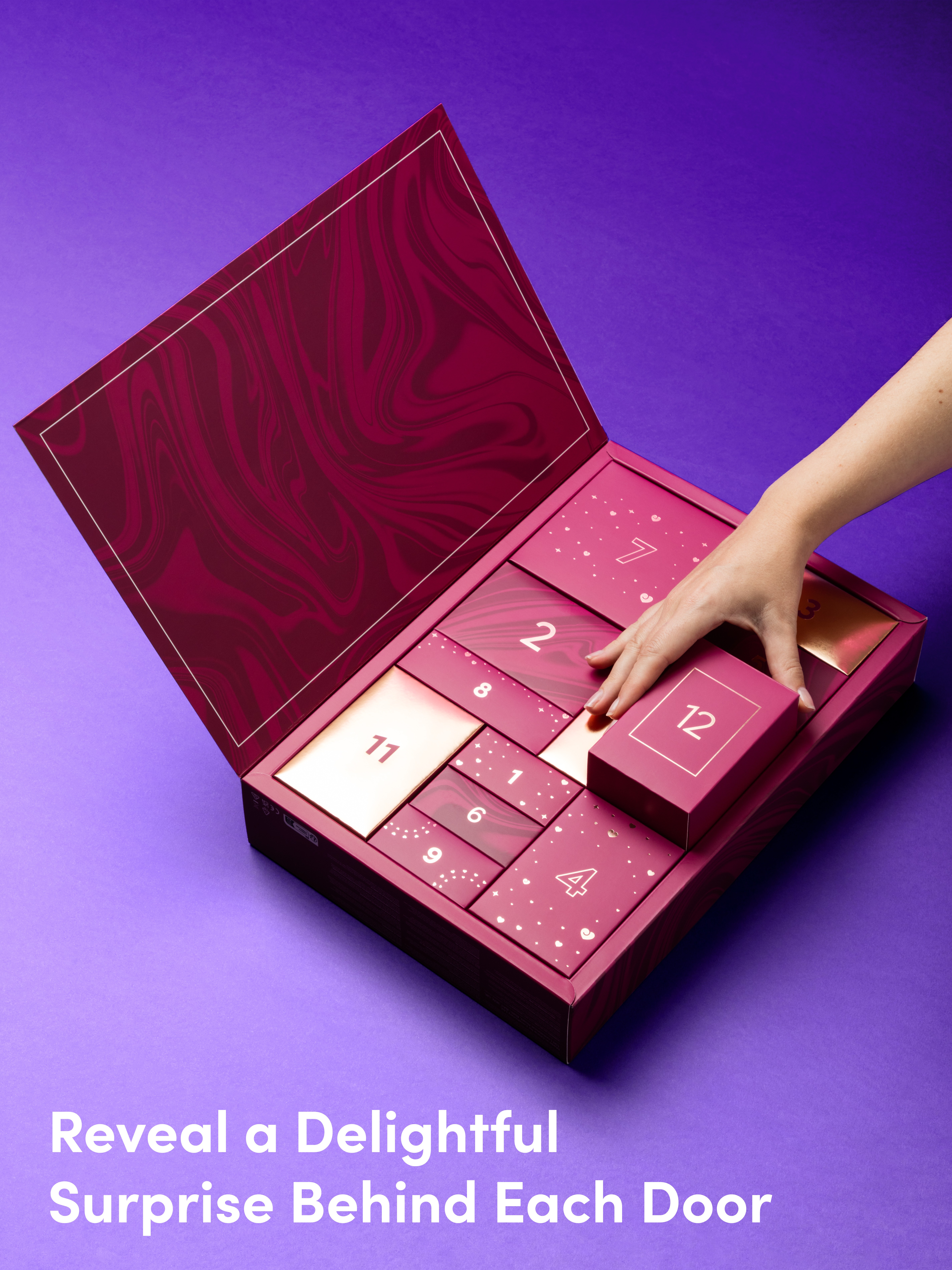 Behind each enticing door, you will discover a captivating assortment of surprises designed to tantalise and delight, from sensory sensations to skin-tingling massage, each individually wrapped gift promising to widen the eyes and raise pulses.
